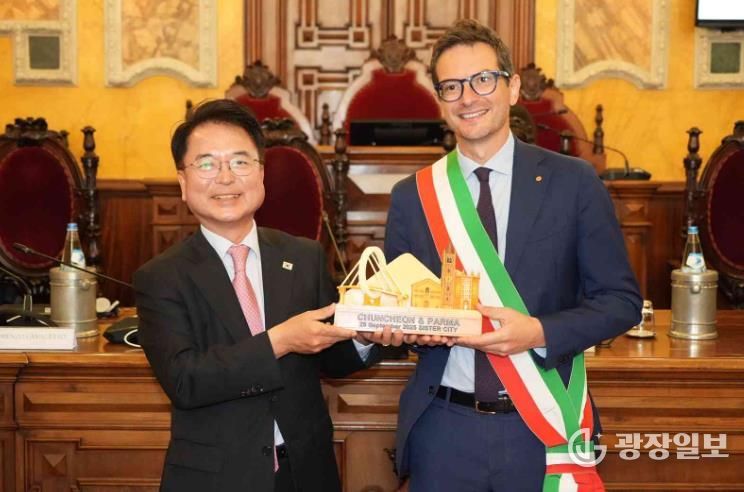 25일에는 이탈리아 파르마 시청에서 미켈레 구에라 파르마시장과 양 시간 자매결연 협약을 체결했다.