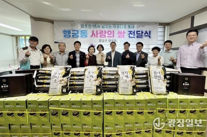 광장일보 나학천 기자 | 지난 26일 수원시 팔달구 행궁동은 추석 명절 이웃돕기 후원 ‘행궁동 사랑의 후원 물품 전달식’을 개최했다. 전달식에는 행궁동 취약계층을 위해 힘을 모아 후원 물품을 기부한 행궁동 주민자치회 등 단체장들과 후원자들이 참석하여 나눔의 정을 함께했다.