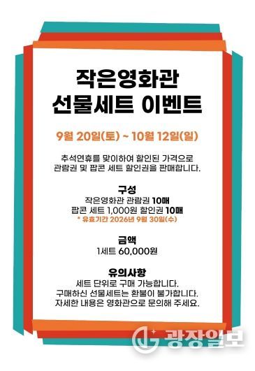 광장일보 주재영 기자 | 성주별고을시네마(창의문화센터 3층)는 민족 대명절 추석을 맞아 9월 20일부터 10월 12일까지 ‘추석맞이 선물세트 이벤트’를 진행한다.