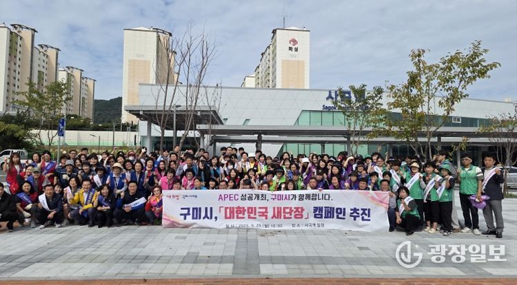 광장일보 주재영 기자 | 구미시는 지난 29일 사곡역 일원에서 ‘대한민국 새단장’ 캠페인을 전개하며 추석 명절과 10월 APEC 정상회의를 앞두고 도시환경 정비에 나섰다. 이번 행사에는 행정안전국장을 비롯해 지역 도·시의원, 이통장협의회, 주민단체 등 150여 명이 참여해 성황을 이뤘다.