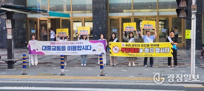 광장일보 주재영 기자 | 부산진구는 추석을 맞아 24일, 25일 이틀에 걸쳐 보행자 통행량이 많은 부전시장과 서면롯데백화점 앞에서 ‘무단횡단 금지, 교통안전 캠페인’을 실시했다.