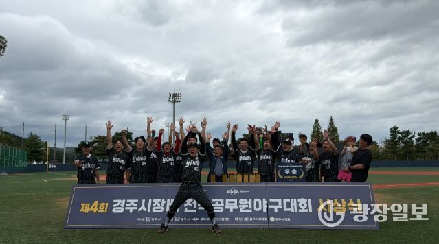 광장일보 주재영 기자 | 포항교육지원청 소속 교사 야구팀 ‘야통’이 제4회 경주시장배 전국 공무원 야구대회에서 우승을 차지했다. 9월 25일부터 28일까지 경주 베이스볼파크에서 열린 이번 대회는 전국에서 13개 기관 공무원 팀이 참가했다.