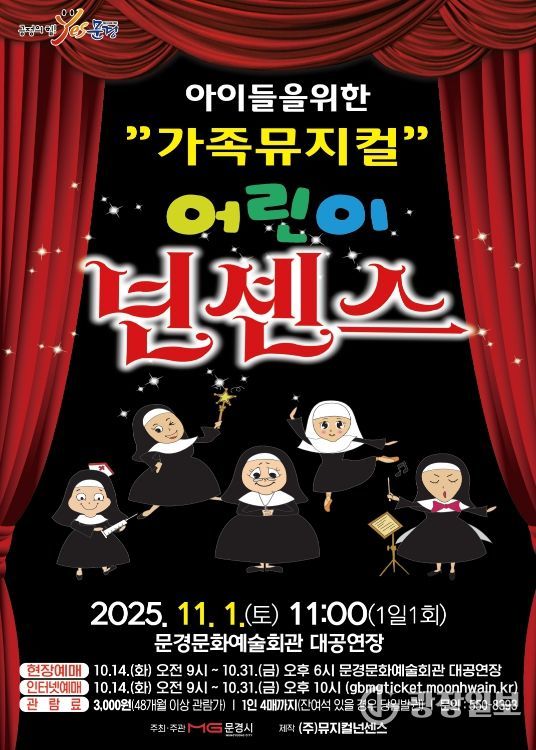 광장일보 주재영 기자 | 문화예술회관에서는 11월 기획공연으로 화끈하고 재미있는 수녀들의 이야기를 담은 뮤지컬 ‘어린이 넌센스’공연을 11월 1일 11:00에, 뮤지컬‘넌센스’공연을 11월 1일 17:00에 각각 문경문화예술회관 대공연장에서 진행한다.