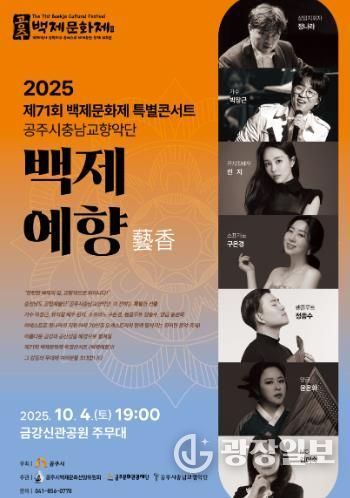 광장일보 주재영 기자 | 공주시충남교향악단은 제71회 백제문화제를 맞아 오는 10월 4일 저녁 7시, 공주 금강신관공원 주무대에서 특별콘서트 ‘백제 예향’을 개최한다고 밝혔다.