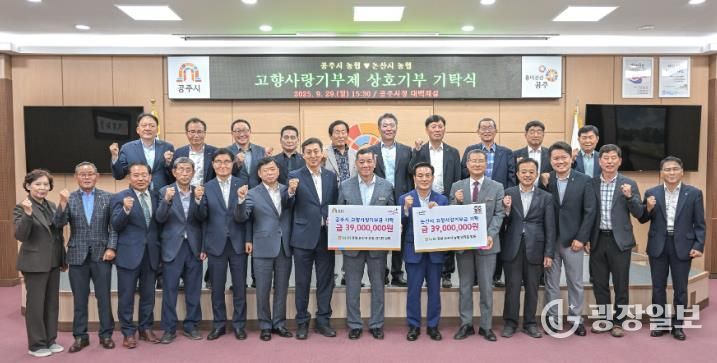 광장일보 주재영 기자 | 공주시는 지난 29일 시청 대백제실에서 논산시와 양 시 농협 관계자들이 참석한 가운데 고향사랑기부금 상호 기탁식을 개최했다고 밝혔다.