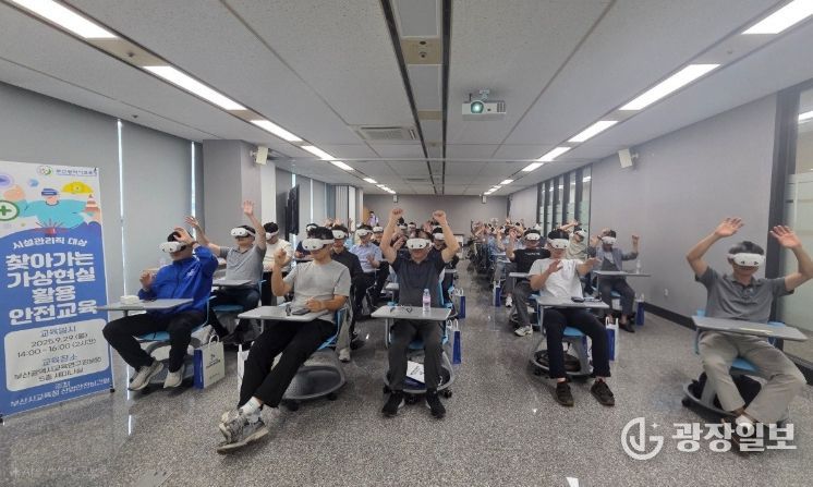광장일보 주재영 기자 | 부산광역시교육청은 29일 오후 부산진구 양정동 교육연구정보원 세미나실에서 학교(기관) 소속 시설관리직원 50명을 대상으로 ‘찾아가는 가상현실(VR) 활용 안전교육’을 실시했다.