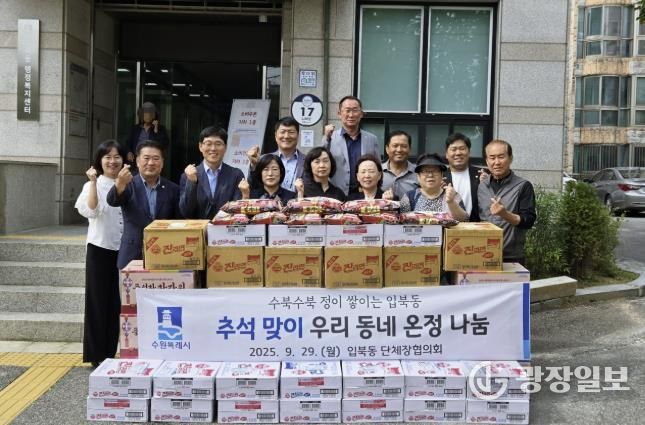 이경영 동장은 “경제적으로 어려운 시기에도 관내 취약계층을 위해 한결같은 온정과 관심을 베풀어 주신 민간기관과 단체, 개인 후원자분들께 감사드린다”라며 “소외되는 이웃 없이 입북동 주민 모두가 행복한 추석 명절 보내시길 바란다”라고 말했다.