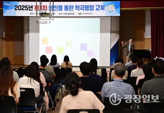 광장일보 주재영 기자 | 대구 동구청은 지난 26일, 동구 소속 공무원과 (재)동구문화재단 직원 포함 80여 명을 대상으로 ‘제1차 혁신을 통한 적극행정 교육’을 실시했다.