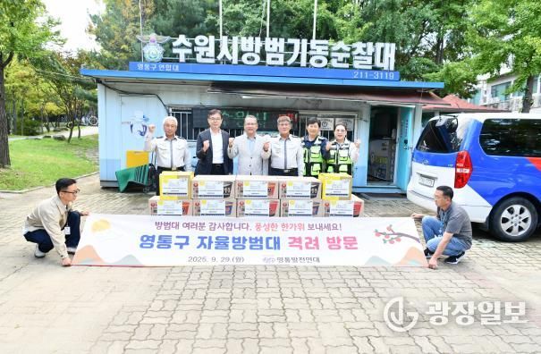 광장일보 나학천 기자 | 지난 29일, 수원시 영통구 영통발전연대는 다가오는 추석 명절을 맞아 영통구 자율방범대 초소를 방문하여 격려 물품을 전달했다.