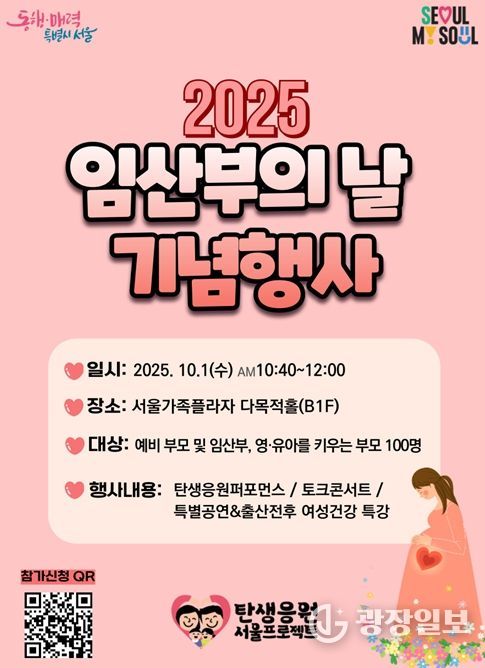이와 관련해 서울시는 10월 1일 오전 10시 40분 서울가족플라자 다목적홀에서 ‘2025 임산부의 날 기념행사’를 개최한다고 밝혔다. 이번 행사는 저출생 시대에 더욱 중요해진 생명의 소중함과 출산의 가치를 함께 나누고, 임산부를 배려하는 문화를 우리 사회 전반으로 확산하기 위해 마련됐다.