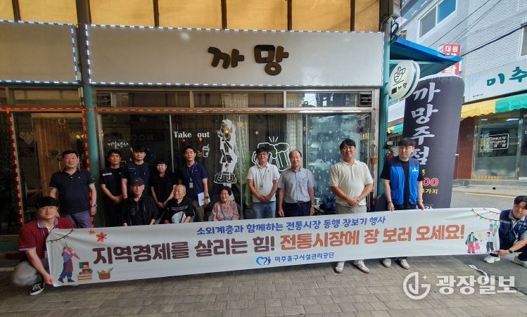 광장일보 주재영 기자 | 인천 미추홀구시설관리공단은 지난 29일 추석 연휴를 앞두고 지역 경제 활성화와 소외된 이웃 지원을 위해 용현시장에서 ‘전통시장 동행 장보기’ 행사를 개최했다.