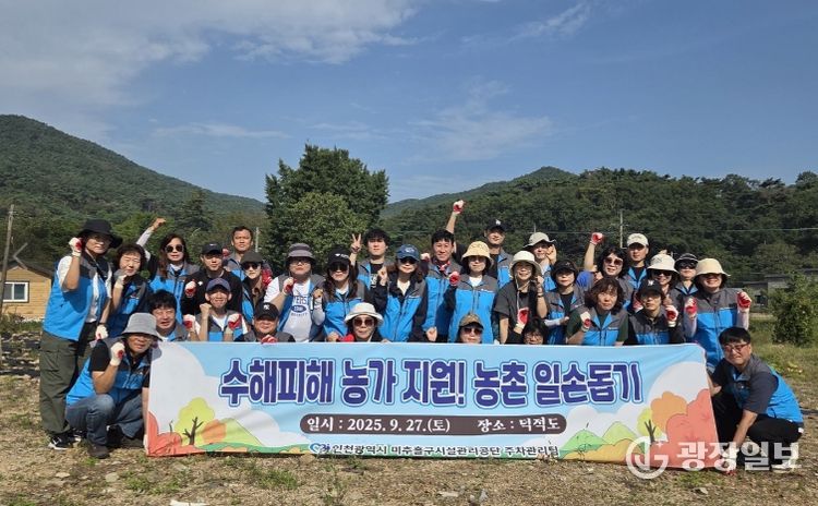 광장일보 주재영 기자 | 인천 미추홀구시설관리공단은 지난 27일 사회공헌활동의 일환으로 옹진군 덕적도를 방문해 수해 농가 복구 지원과 함께 지역 아동 대상 교통안전 캠페인을 실시했다.