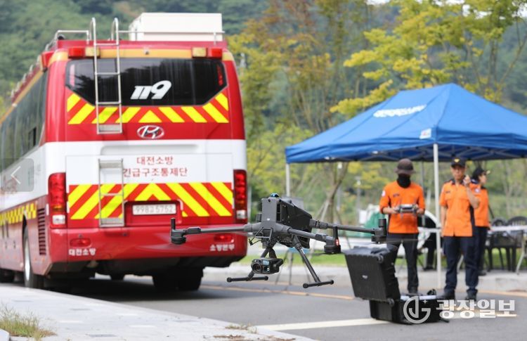 대전소방본부와 119특수대응단 긴급기동대·항공대, 대덕소방서 구조대 등 20여 명이 참여했으며, 드론 등 장비가 활용됐다.
