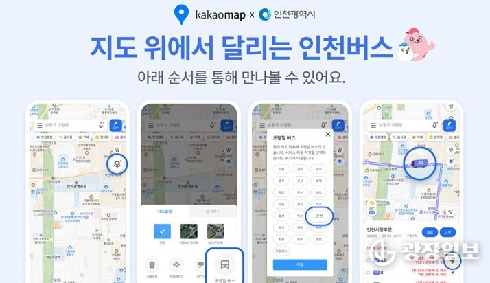 광장일보 주재영 기자 | 인천광역시는 오는 9월 30일부터 카카오맵을 통해 실시간(초정밀) 버스 위치 서비스를 제공한다고 밝혔다.