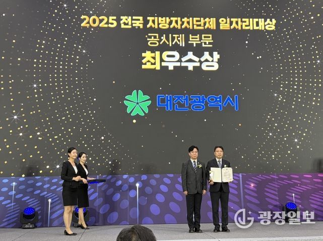 광장일보 이현나 기자 | 대전시는 30일 청주 오스코에서 열린 고용노동부 주관 ‘2025 전국 지방자치단체 일자리대상’ 시상식에서 ▲일자리 공시제 부문 최우수상 ▲우수사업 부문 우수상을 동시에 받으며 4년 연속 수상의 영예를 안았다.