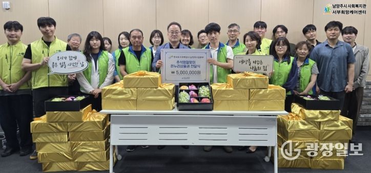 서부희망케어센터는 기탁받은 상품권으로 5만 원 상당의 과일세트 100개를 준비했으며, LH 남양주사업본부 임직원들이 직접 가정을 방문해 선물꾸러미를 전달하고 정성 어린 명절 인사를 전했다.