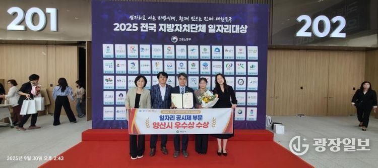 광장일보 주재영 기자 | 양산시는 고용노동부가 주관하는 ‘2025년 전국 지방자치단체 일자리 대상’에서 지역일자리 목표 공시제 부문 우수상을 수상했다고 밝혔다.