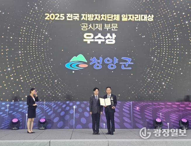 광장일보 주재영 기자 | 청양군은 지난 30일 청주오스코 2층 그랜드볼룸에서 열린 고용노동부 주관 ‘2025 전국 지방자치단체 일자리대상’ 공시제 부문에서 우수상을 수상했다고 밝혔다.