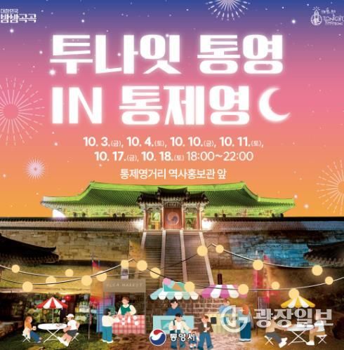 광장일보 주재영 기자 | 통영시는 오는 3일부터 18일까지 매주 금․토, 통제영거리에서 '투나잇 통영 in 통제영'을 개최한다.