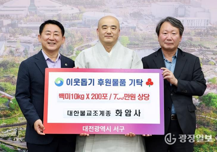 광장일보 이현나 기자 | 대전 서구는 지난 30일 화암사로부터 백미 10kg 200포(750만 원 상당)를 기탁받았다고 1일 전했다.