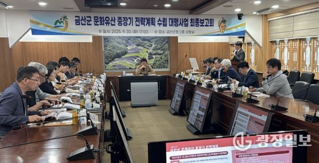 광장일보 주재영 기자 | 금산군은 9월 30일 군청 상황실에서 금산군 문화유산 중장기 전략계획 수립 연구용역 최종보고회를 개최했다.