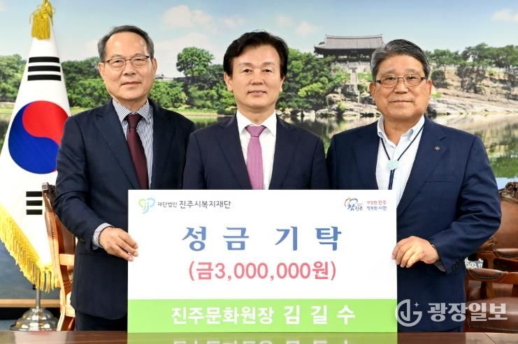 광장일보 주재영 기자 | 진주문화원 김길수 원장은 지난 9월 30일 기업인의 방에서 지역사회 어려운 이웃돕기 성금 300만 원을 진주시복지재단에 기탁했다.