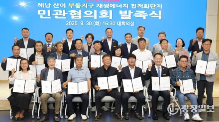 광장일보 주재영 기자 | 해남군은 9월 30일 해남군청 대회의실에서‘해남 산이 부동지구 재생에너지 집적화단지 민관협의회’발족식을 개최하고, 대규모 재생에너지 집적화단지 조성을 위한 본격적인 민관 협력 체계 구축에 나섰다.