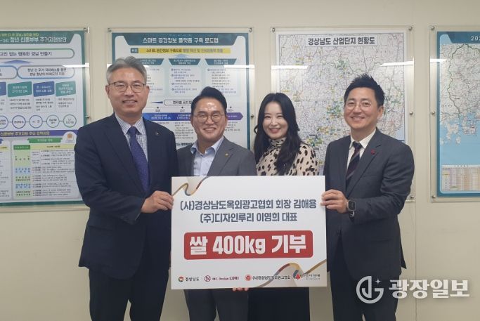 광장일보 주재영 기자 | 경상남도는 1일 도청에서 (사)경상남도옥외광고협회, ㈜디자인루리와 이웃돕기 성금·물품 전달식을 개최했다고 밝혔다.