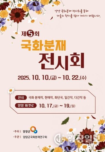 광장일보 이현나 기자 | 양양군 국화분재연구회(회장 윤종욱)는 오는 10일부터 22일까지 13일간 양양군농업기술센터에서 ’제5회 국화분재 전시회‘를 개최한다.