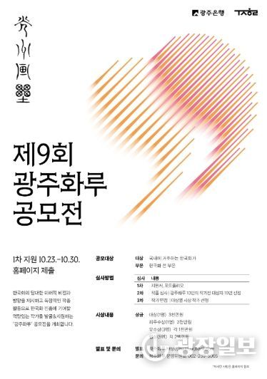 광장일보 주재영 기자 | 광주은행은 전국 한국화 작가를 대상으로 ‘제9회 광주화루 공모전’을 개최한다고 밝혔다.