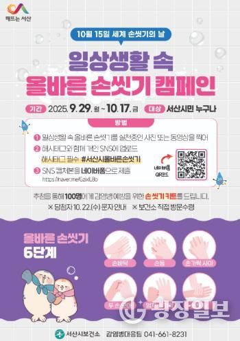 광장일보 주재영 기자 | 충남 서산시는 세계 손씻기의 날(10월 15일)을 맞아 10월 17일까지 다양한 행사를 진행한다고 밝혔다.