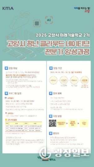 한편고양시는 오는 10월부터 '미래기술학교 2기 – 고양시 청년 클라우드 네이티브 전문가 양성과정'을 운영할 예정으로, 9월 4일부터 10월 12일까지 잡아바 어플라이를 통하여 교육생을 모집한다.