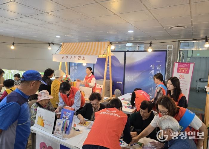 치매안심센터 부스를 운영하며 홍보 리플렛과 물품을 제공하고, 치매 조기검진 방법과 예방 수칙 ‘3·3·3’을 안내했다. 또 퀴즈, 칠교놀이, 포일아트 체험 등을 통해 주민들이 쉽고 재미있게 치매 예방 활동을 체험할 수 있도록 했다.