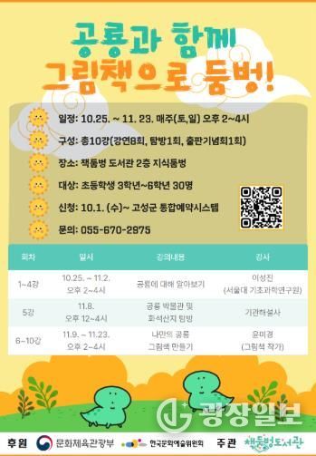 프로그램 참여 신청은 10월 1일부터 고성군 통합예약시스템을 통해 할 수 있으며, 자세한 사항은 책둠벙 도서관으로 문의하면 된다.