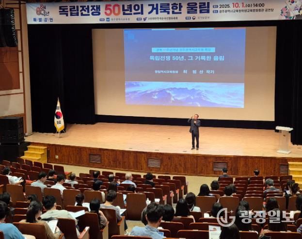 광장일보 주재영 기자 | 광주시교육청은 1일 학생교육문화회관 공연장에서 광복 80주년을 맞아 인문학 강연 ‘독립운동 50년의 거룩한 울림’을 진행했다.
