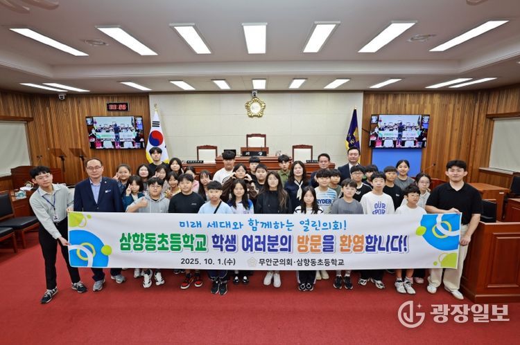 무안군의회 김봉성 행정문화복지위원장은 “오늘 방문이 학생들이 의회의 역할과 민주주의의 소중함을 이해하는 계기가 되길 바란다”며 “앞으로도 다양한 체험과 교육의 장을 마련하여 미래세대와 함께하는 열린 의회를 만들어가겠다”고 전했다.