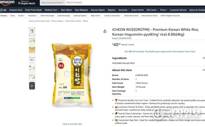 한편, 이번 아마존 입점을 통해 미국 소비자들은 온라인으로 손쉽게 ‘임금님표 이천쌀’을 구매할 수 있으며, 미국 현지 물류창고를 활용한 신속 배송 서비스도 제공될 예정이다.