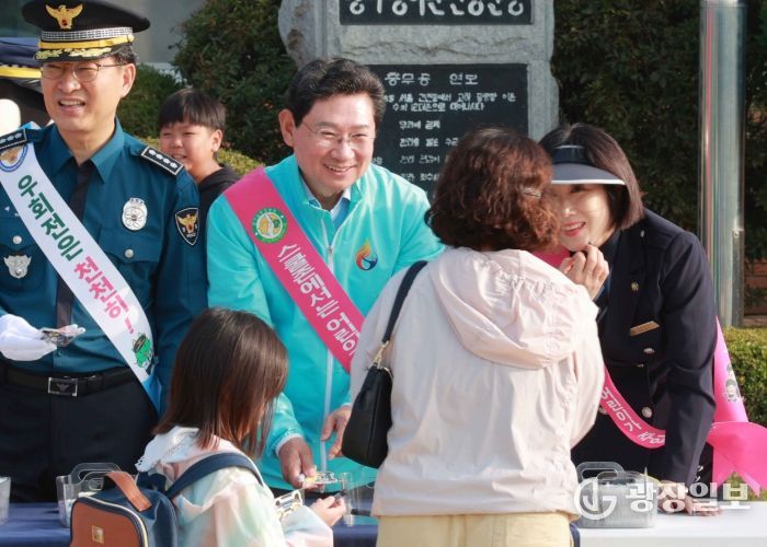 광장일보 주재영 기자 | 이상일 용인특례시장은 1일 오전 처인구 이동읍 송전초등학교를 방문해 동부녹색어머니회와 함께 어린이 교통안전 캠페인을 벌였다.