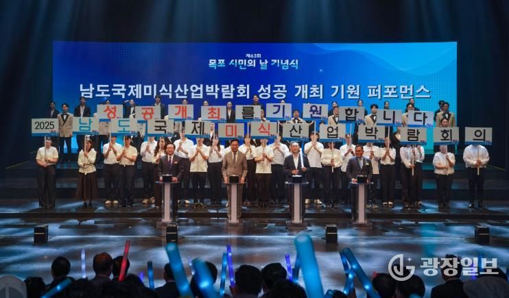 기념식은 ▲시민의 상 시상 ▲목포시립예술단 축하공연 ‘신명나는 목포, 젊은 목포’ ▲2025 남도국제미식산업박람회 성공 개최 기원 퍼포먼스 ▲‘목포의 찬가’ 합창 등으로 다채롭게 진행됐다.