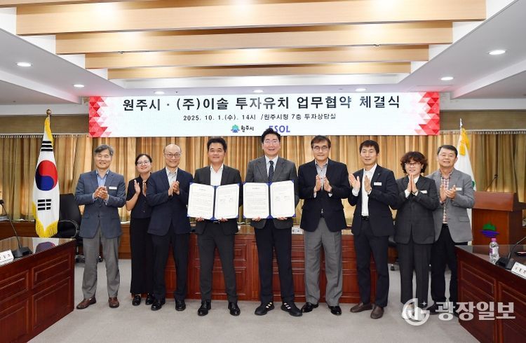 광장일보 이현나 기자 | 원주시는 10월 1일 오후 2시, 시청 7층 투자상담실에서 ㈜이솔(대표 김병국)과 투자유치 협약(MOU)을 체결했다. 이번 협약은 총 505억 원 규모의 투자로, 부론일반산업단지에 소형 방사광가속기와 첨단 EUV 반도체 검사장비 연구·생산시설을 구축하는 사업이다. EUV(Extreme Ultra-Violet)는 반도체 초미세 공정(7nm 이하)에 필수적인 광원이다.