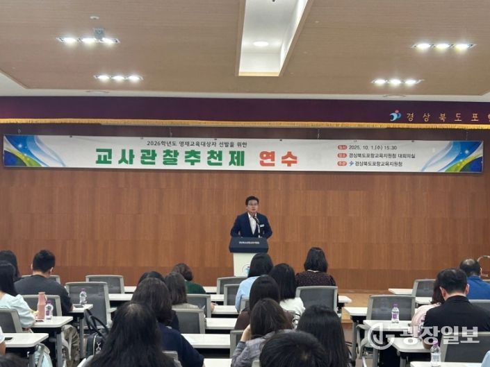 광장일보 주재영 기자 | 포항교육지원청은 10월 1일 포항교육지원청 대회의실에서 초ㆍ중등 영재교육업무 담당 교사 100여명을 대상으로 '2026학년도 영재교육대상자 선발을 위한 교사관찰추천제 연수'를 실시했다.