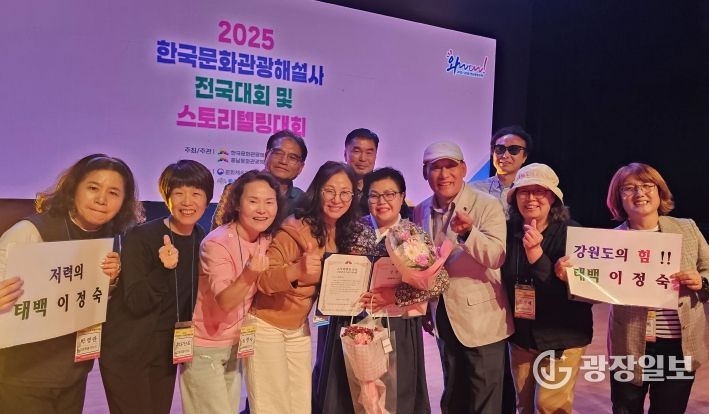광장일보 이현나 기자 | 태백시는 시 문화관광해설사 이정숙 씨가 지난 9월 29일부터 30일까지 충남 부여에서 열린 '2025년 한국문화관광해설사 스토리텔링 경연대회'에서 최고상인 금상을 수상했다고 밝혔다.