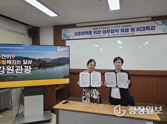광장일보 이현나 기자 | 강원관광재단 글로벌마케팅실은 10월 1일 강원대학교 독어독문학전공과 글로벌 관광 전문 인재 양성을 위한 업무협약(MOU)을 체결했다.