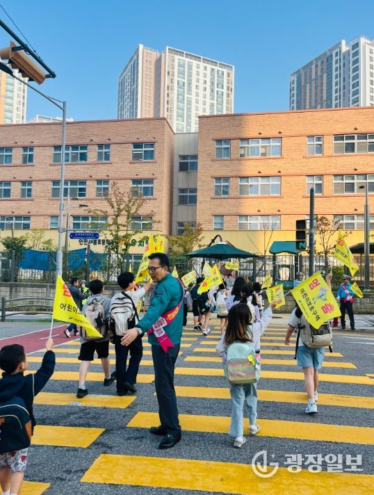 광장일보 주재영 기자 | 연수구는 지난달 30일과 10월 1일 은송초등학교와 새봄초등학교 앞 스쿨존 횡단보도에서 ‘어린이 교통안전 깃발 캠페인’을 실시했다.