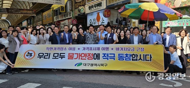 광장일보 주재영 기자 | 대구 북구청은 10월 1일 팔달신시장에서 열린 전통시장 장보기 행사와 연계해 건전한 유통거래 질서 확립을 위한 물가안정 캠페인을 실시하고 착한가격업소 이용 홍보 등 시장을 찾은 주민들에게 관심과 동참을 유도했다.