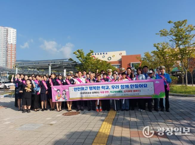광장일보 주재영 기자 | 경상북도경산교육지원청은 10월 1일 07시 50분부터 하주초등학교 정문 및 후문에서 하주초등학교 학생자치회 학생과 녹색어머니연합회와 함께 “학생 안전, 학교폭력예방, 도박예방 캠페인”을 실시했다.