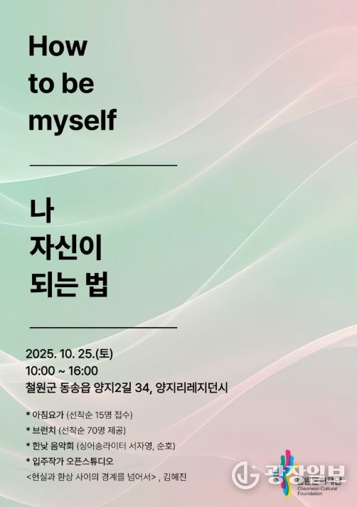 광장일보 이현나 기자 | 철원문화재단은 2025년 10월 25일 오전 10시부터 16시까지 양지리 레지던시를 개방해 웰니스 문화행사를 진행한다.
