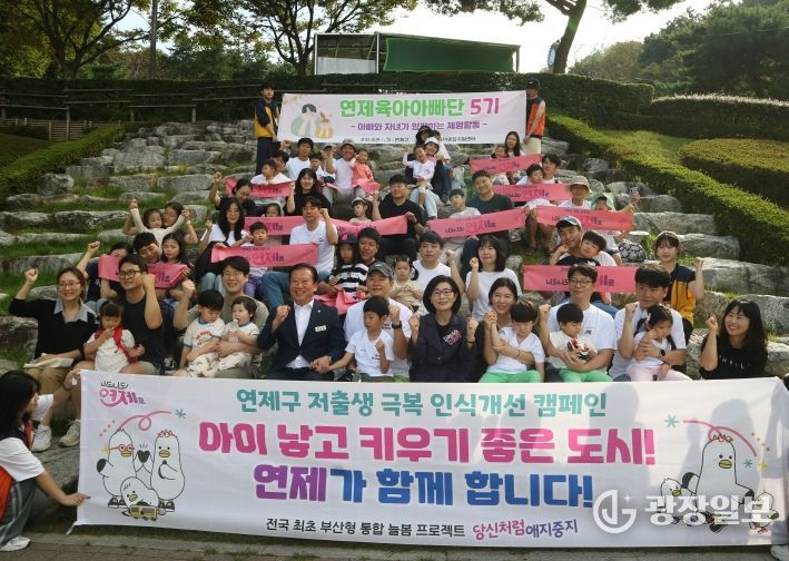 연제육아아빠단 가족 60여 명이 참여한 이번 숲 체험은 △곤충·식물 관찰 △천연비눗방울 놀이 △해먹 놀이 △나무 및 화분 꾸미기 체험 △부산시 출생시책(다함께 애지중지 등) 홍보 △출생 장려 캠페인 등으로 진행됐다.