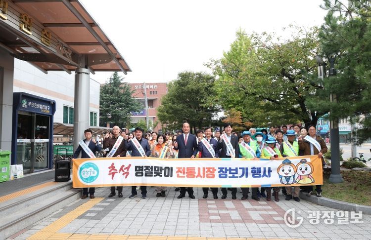 광장일보 주재영 기자 | 상주시는 추석 명절을 앞두고 경기침체로 어려움을 겪고 있는 전통시장 상인들의 사기 진작과 내수경기 활성화를 위해 10월 2일에 전통시장 장보기 행사를 진행했다.