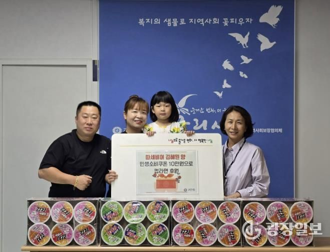 광장일보 주재영 기자 | 구리시 교문1동 행정복지센터는 지난 10월 1일, 관내 식당 따세비어의 딸 김혜원(5세) 양이 민생 소비 쿠폰 10만 원으로 마련한 컵라면 17박스를 어려운 취약계층에 전달하기 위해 기탁했다고 밝혔다.